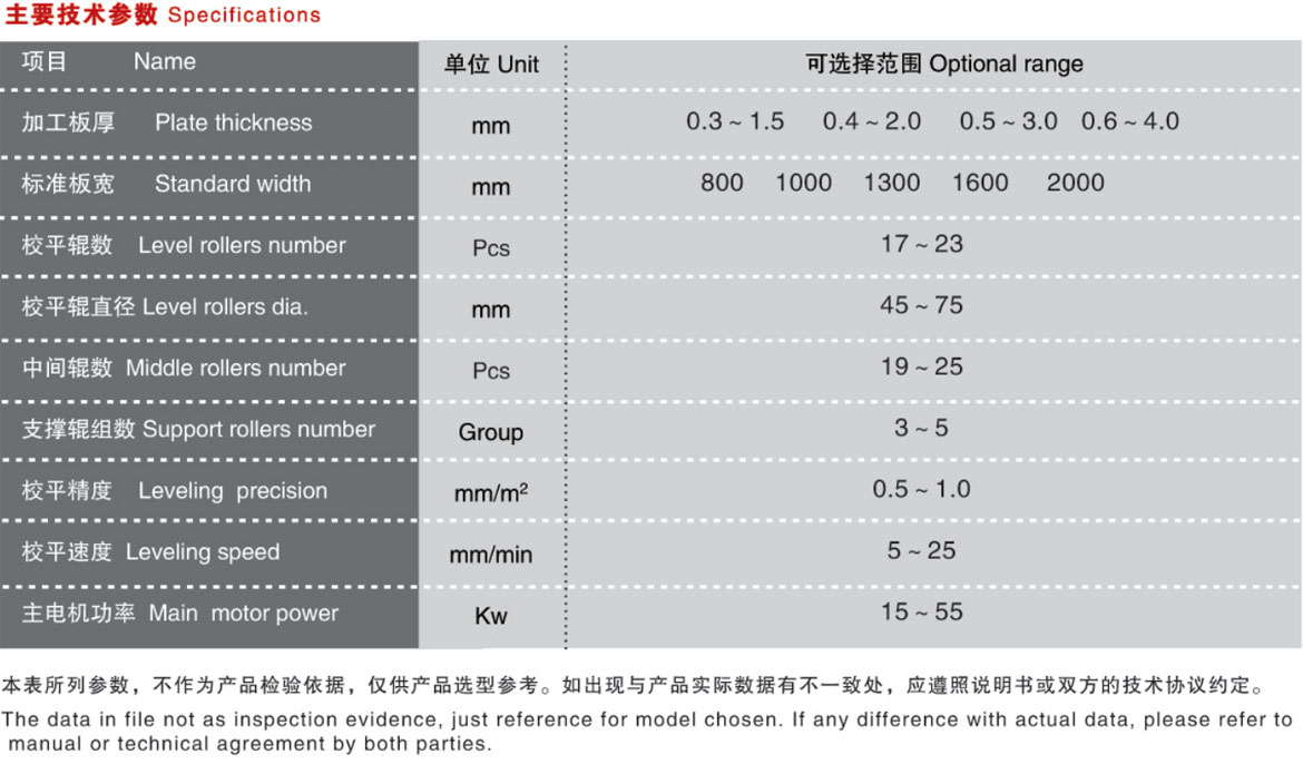 本機床是四重式校平機的升級機型。在上、下排校平工作輥與支撐輥(輪)之間各加裝進(jìn)一排中間輥,構(gòu)成上下各三重,共六重的組輥結(jié)構(gòu)。通過中間輥的過渡,支撐輥(輪)的支撐力不直接作用于工作輥,避免了四重式校平機工作時,在敏感材料表面留下支撐輥(輪)壓痕的現(xiàn)象,最大程度地保護(hù)加工材料的表面狀態(tài)。主要用于校平鋁板、不銹鋼板、銅板、有色金屬板、不同金屬復(fù)合板,涂、鍍、磨工藝金屬板等對板表面要求較高的板材。校平輥受力分布均勻,結(jié)構(gòu)剛性好,工作輥繞曲變形小,校平精度高。