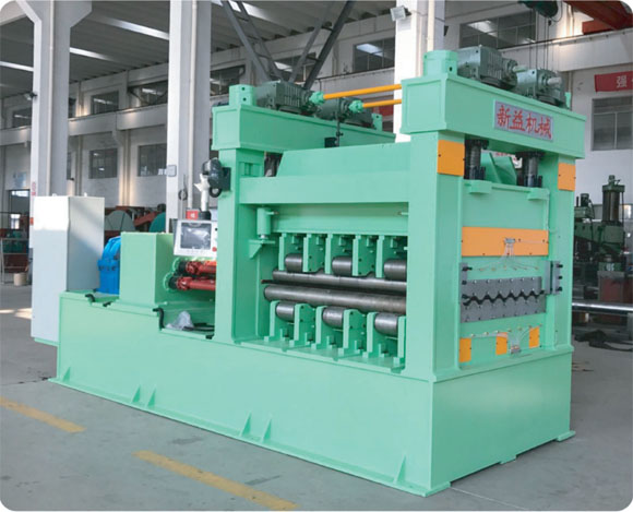 本機床為輥式金屬板料整平專用設(shè)備,通常由動力、主機和電器控制等部分組成。利用多輥工作原理,使板料在上、下校平輥之間反復(fù)變形,消除應(yīng)力,達(dá)到校平的目的。在上、下排工作輥外側(cè),設(shè)剛性支撐輥(輪),構(gòu)成四重式組輥結(jié)構(gòu)。板料通過本機校平,可明顯改善其平整狀態(tài),提高工件的質(zhì)量?瑟毩⒐ぷ,用于單塊板材的校平;亦可在本機前配置開卷、引料,后面配置剪切、垛料及聯(lián)機機構(gòu)等,通過控制系統(tǒng)連成性能完備的生產(chǎn)線,對金屬卷材進(jìn)行整平、分切。